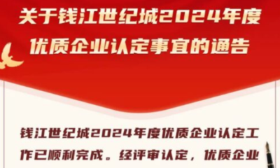 喜訊!杭州恒領(lǐng)科技有限公司獲評(píng)錢江世紀(jì)城 2024 年度優(yōu)質(zhì)企業(yè)